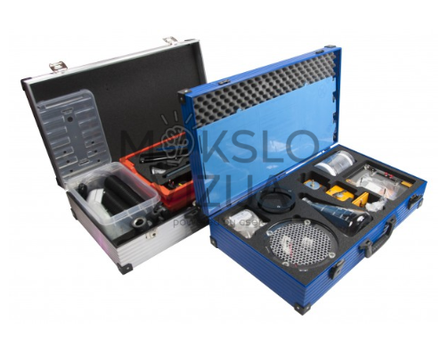 Visa įranga supakuota tvarkingai į patogų dėklą su putų įdėklu, todėl rinkinys yra lengvai transportuojamas ir saugiai laikomas. Aiškios jungčių schemos ir modulinių komponentų išdėstymas leidžia greitai ruošti eksperimentus ir patogiai keisti konfigūracijas pagal mokymo užduotis. Tai ypač svarbu, kai darbas vyksta su keliomis mokinių grupėmis ar skirtinguose užsiėmimuose.