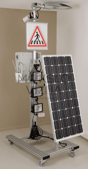 Edukacinė sistema, skirta mokymui apie saulės energijos panaudojimą pėsčiųjų signalizacijai, vaizdo stebėjimui ir gatvių apšvietimui.