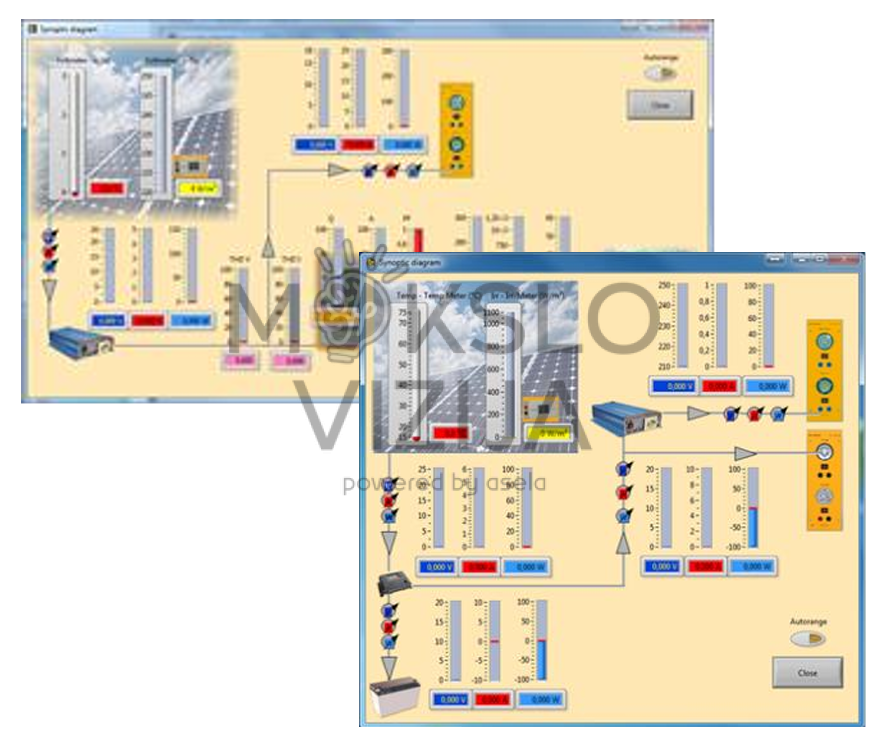 | Eksperimentai | I–V kreivės, didžiausios galios taškas, efektyvumo nustatymas, serijinis ir lygiagretus jungimas, modulių palyginimas |