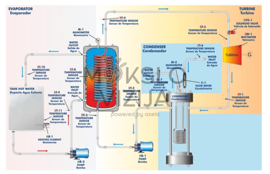 Ši sistema sukurta tam, kad padėtų mokiniams ir studentams suprasti atsinaujinančių išteklių svarbą bei veikimo principus, demonstruojant garų energijos konversiją į elektros energiją.
