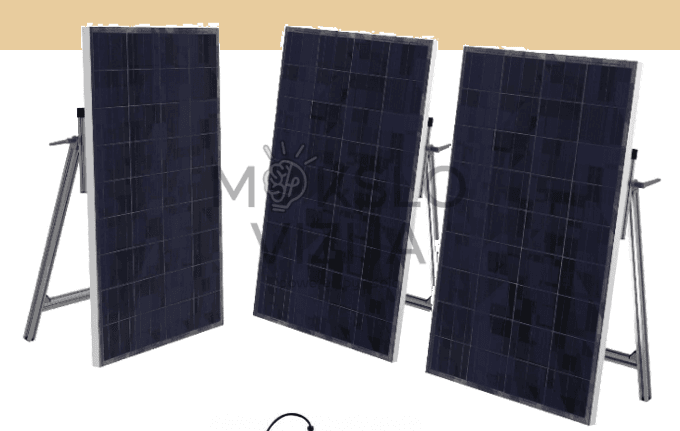 - Saulės modulis su reguliuojamu rėmu – monokristalinis modulis su reguliuojamu pasvirimo kampu.