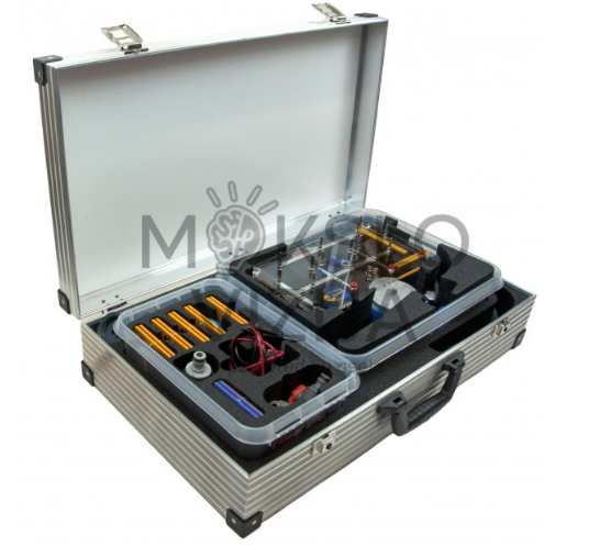 Visi komponentai yra tvarkingai sudėti į transportavimui ir laikymui skirtą dėžę, todėl rinkinį patogu naudoti mokymo aplinkoje ir saugiai laikyti. Tokia konstrukcija leidžia mokytojui lengvai paruošti eksperimentus ir valdyti užsiėmimus, o mokiniams – savarankiškai atlikti užduotis, fiksuoti ir analizuoti rezultate gautus duomenis.