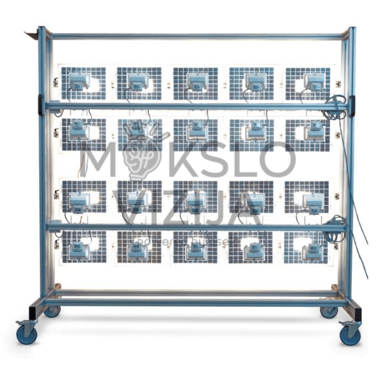 Mobilioji mokymo sistema su 20 fotovoltinių modulių, skirta fotovoltinės technologijos pagrindams ir pagrindinėms grandinėms mokyti.