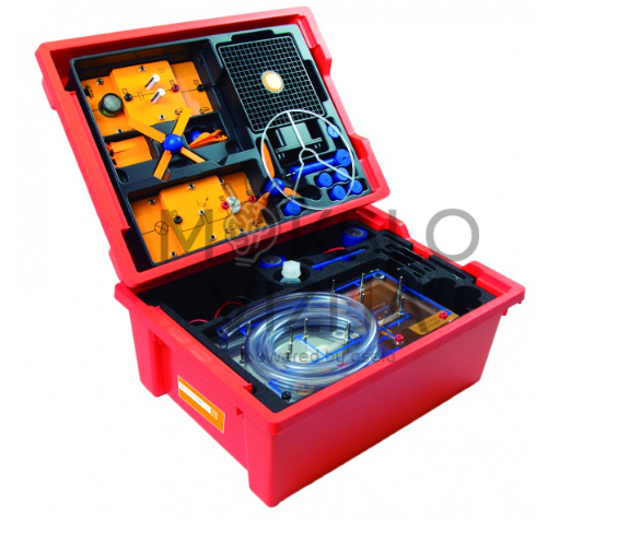 Visi komponentai yra tvarkingai supakuoti į lagaminą, todėl rinkinys yra patogus naudoti klasėje ar laboratorijoje. Dėl modulinių elementų ir aiškios jungimo logikos jį lengva paruošti darbui ir greitai keisti eksperimentų konfigūracijas. Tokia konstrukcija palengvina mokytojo darbą organizuojant pamokas ir suteikia galimybę mokiniams savarankiškai atlikti užduotis, fiksuoti duomenis ir daryti išvadas.