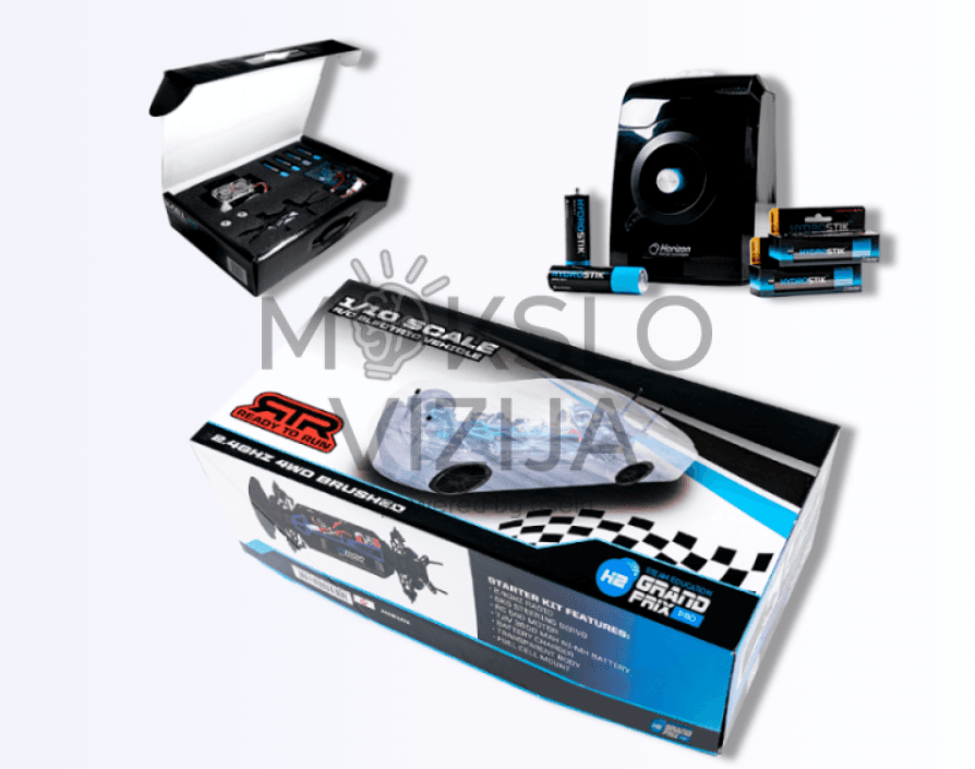 - Skaidrus kėbulas, H-cell laikiklis, papildomi keturi ratlankiai ir padangos.