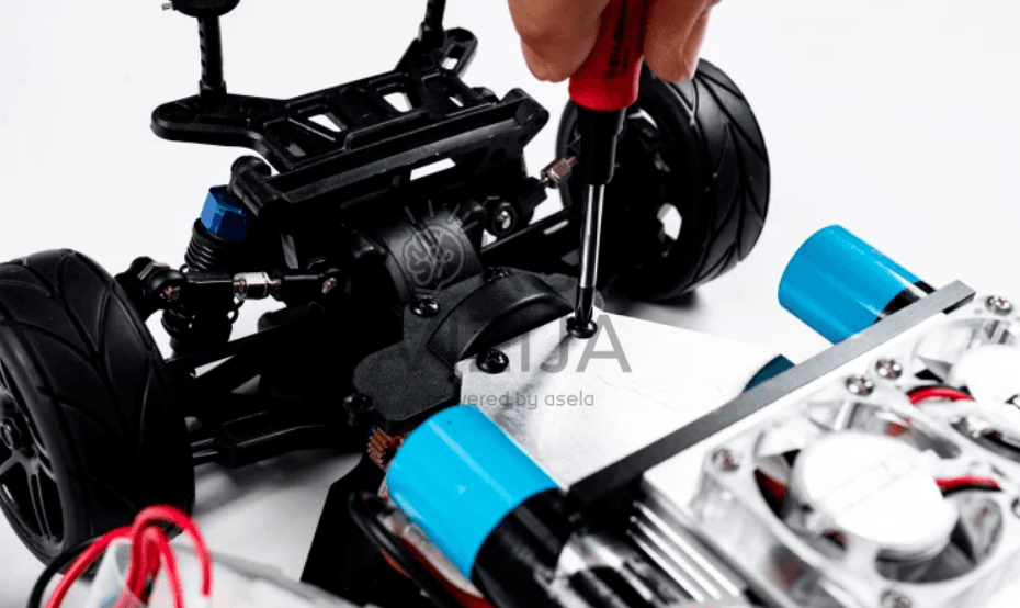 - Lengvai surenkamas 1:10 mastelio elektrinis visureigis.