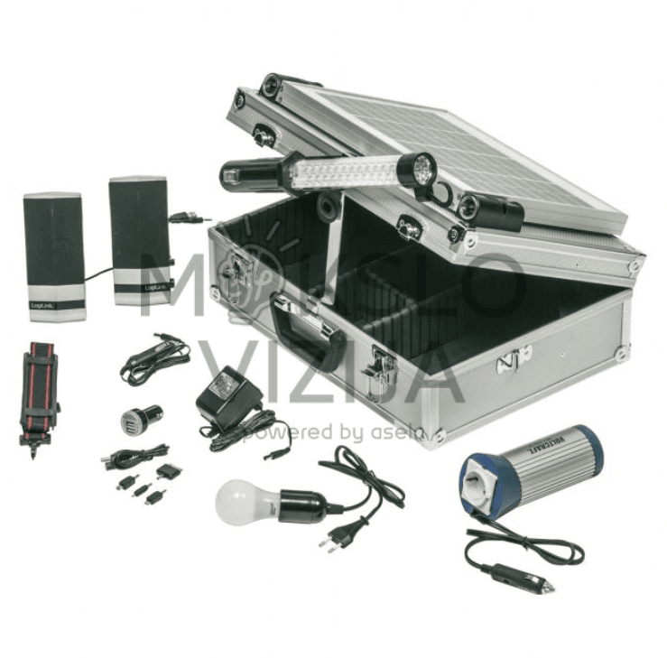 - Integruotas saulės modulis: leidžia generuoti elektros energiją iš saulės šviesos.