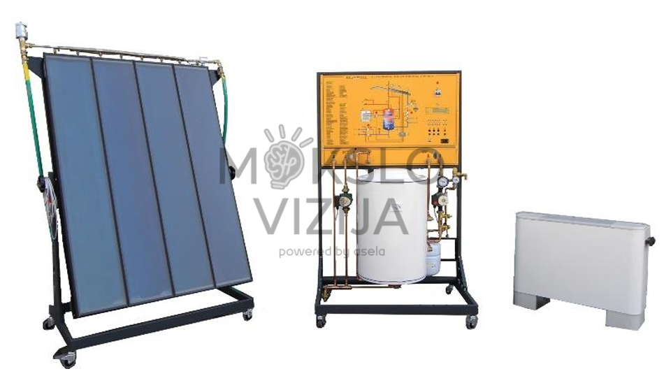 Stende naudojamas tikras saulės kolektoriaus modulis, sumontuotas metalinėje konstrukcijoje ir sujungtas su pagrindiniu moduliu lanksčiais vamzdžiais. Sistema papildomai aprūpinta išleidimo, apsauginiais ir užpildymo vožtuvais, todėl mokymo metu galima atlikti pilnaverčius hidraulinius bandymus ir imituoti realų saulės šiluminės sistemos eksploatavimą. Konvektorinis šildytuvas naudojamas kaip šilumos vartotojas, leidžiantis praktiškai patikrinti, kaip saulės kolektoriaus pagaminta šiluma gali būti panaudota patalpų šildymui. Jis prijungiamas lanksčiais vamzdžiais, todėl galima lengvai keisti sistemos konfigūraciją bei atlikti įvairius bandymus.