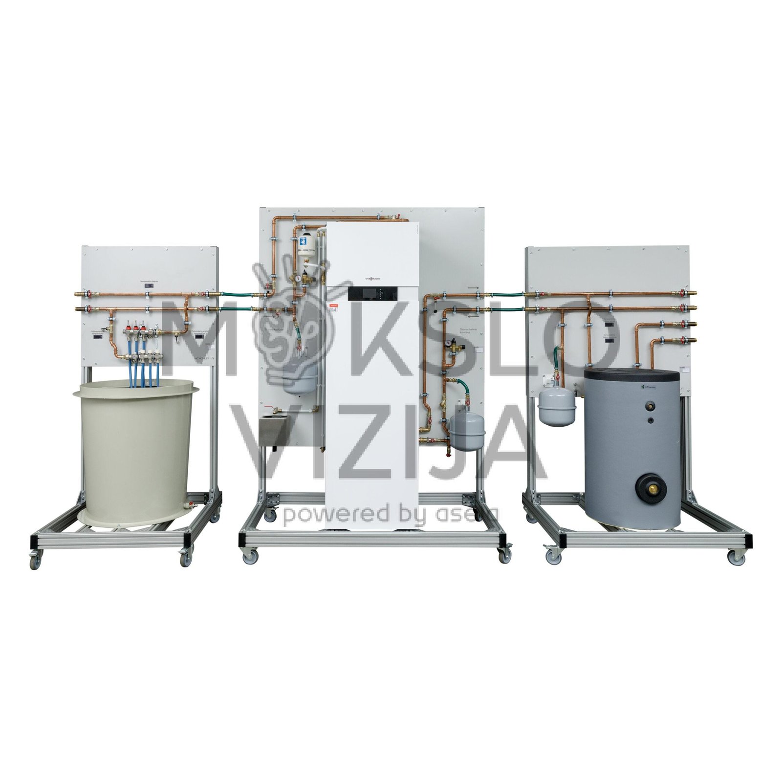 Stendas skirtas mokyti geoterminių vamzdžių ir grindinio šildymo sistemų veikimo principų, vamzdynų montavimo, jungimo ir srautų valdymo. Modulis naudojamas kaip žemės energijos šaltinis šilumos siurbliui ir šilumos energijos imtuvas (šildomų grindų imitatorius). Leidžia mokytis matuoti ir reguliuoti srautus bei analizuoti temperatūros parametrus.
