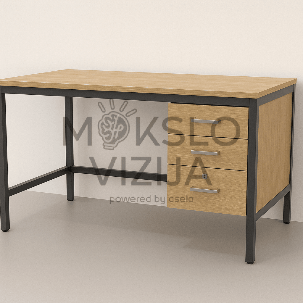 Stalas sukurtas taip, kad užtikrintų patogų, ergonomišką ir tvarkingą darbo paviršių kasdieniam naudojimui klasėje. Tvirta metalinė konstrukcija derinama su kokybišku LMDP stalviršiu, o subalansuotas dizainas išlaiko profesionalų, universaliai pritaikomą stilių. Stalviršio faneros imitacijos briauna suteikia baldui subtilios išraiškos, o pakabinamas stalčių blokas leidžia patogiai laikyti dažniausiai naudojamus daiktus.