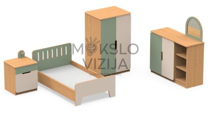 Produkto tipas. Lėlių namelio miegamojo komplektas.