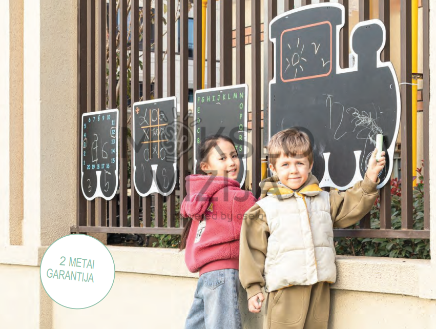 Lauko kreidinė lenta „Traukinys“ yra puikus pasirinkimas vaikų darželiams, siekiantiems praturtinti lauko erdvę žaisminga ir ugdomąja veikla. Šis kūrybiškas keturių dalių rinkinys suteikia vaikams galimybę laisvai kurti ir kartu ugdyti svarbius pažintinius įgūdžius. Gaminys pagamintas iš aukštos kokybės 3 mm storio PVC plokštės, todėl yra tvirtas ir atsparus aplinkos poveikiui. Lauko kreidinė lenta „Traukinys“ yra ne tik mokymosi priemonė, bet ir pramogų bei kūrybiškumo šaltinis. Ji padeda užtikrinti, kad mokymasis lauke būtų įdomus ir įtraukiantis. Puikiai tinka visiems vaikų darželiams, siekiantiems sukurti vaikams įsimintinas patirtis.