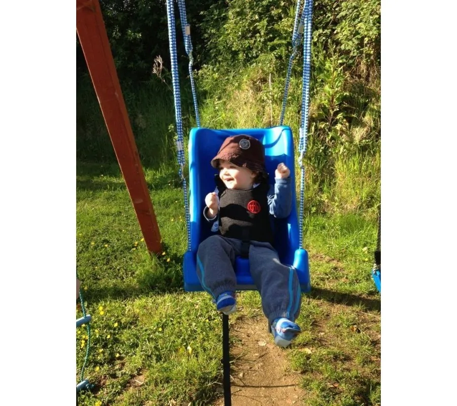 Sėdynė su keturiais reguliuojamais diržais pečiams, krūtinei ir šlaunims. Sėdynė turi minkštą apsaugą tarp kojų. Sūpynės kabo ant keturių reguliuojamų virvių, kurių dėka galima keisti sėdėjimo padėtį arba įgyti pasvirusią padėtį. Medžiaga: plastikas. Sėdynė ir virvės atsparios UV spinduliams.