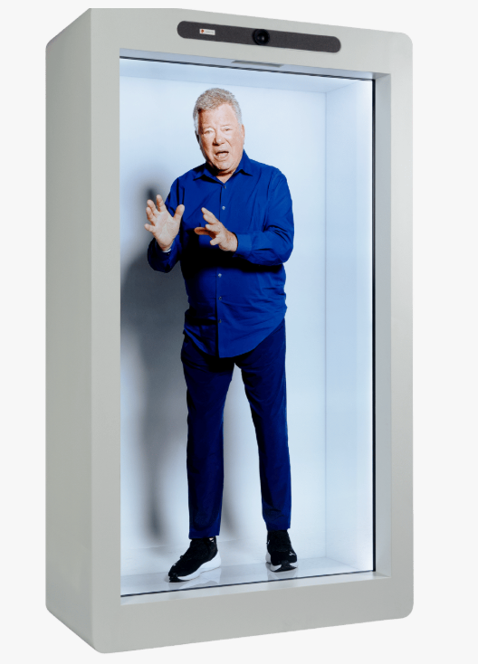 Tai realaus dydžio holografinio vaizdo ir erdvinės sąveikos įrenginys, skirtas nuotolinėms prezentacijoms, renginiams, edukacijai, mažmeninei prekybai, ekspozicijoms ir kitoms situacijoms, kur reikia sukurti stiprų „žmogus priešais mane“ efektą. Įrenginys rodo tiek tiesiogiai transliuojamą, tiek iš anksto paruoštą turinį, o didelis multi-touch tipo ekranas leidžia valdyti turinį vietoje ir kurti interaktyvias patirtis, kai žiūrovai priartėja, stebi demonstracijas ar dalyvauja pokalbyje su ekrane rodomu asmeniu. Vaizdas pateikiamas taip, kad personažas ar objektas atrodytų natūraliai erdvėje, todėl sprendimas tinka pranešėjų „holoportacijai“, produktų demonstravimui, virtualiems sveikinimams, gidų ar konsultantų funkcijoms bei įtraukiančioms edukacinėms pamokoms, kai svarbu emocinis ryšys, akių kontaktą imituojanti kompozicija ir aiškus garsas.