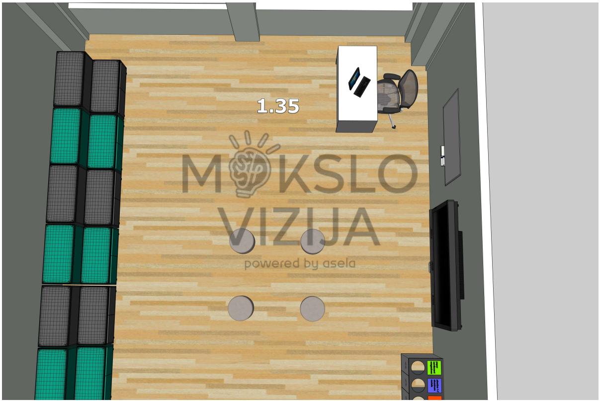 Mes siūlome jau paruoštus neformalių edukacinių erdvių komplektus, pritaikytus konkrečiam naudotojų skaičiui, veiklų pobūdžiui ir patalpų išplanavimui. Šis brėžinys yra pavyzdinis ir gali būti lengvai adaptuojamas pagal individualius poreikius, keičiant baldų išdėstymą ar komplektaciją.