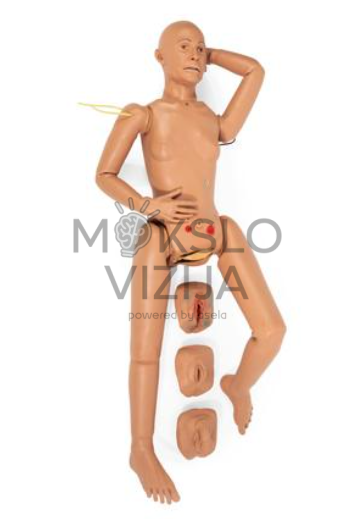 Modelis turi keičiamas vyriškas ir moteriškas lyties dalis bei specialius anatominius modulius, leidžiančius treniruoti jautrias medicinines procedūras ir įvairius klinikinius scenarijus. Natūralus kūno judrumas leidžia mokytis pacientų pozicionavimo, perkėlimo ir kitų prie lovos atliekamų procedūrų.