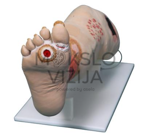 Modelio konstrukcija leidžia patogiai apžiūrėti visą kojos paviršių, nes jis gali būti pasukamas 360° kampu, todėl mokymo metu galima išsamiai analizuoti įvairius pažeidimus ir jų lokalizaciją.