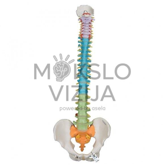 Šiame žmogaus stuburo modelyje 5 skirtingos stuburo dalys skiriasi pagal spalvą. Šio didaktinio lankstaus stuburo savybės yra šios: