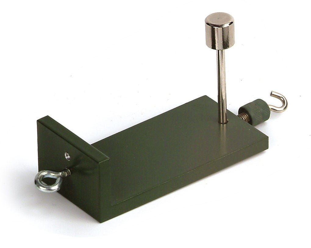Aliuminio L profilis, padengtas žaliai milteliniu būdu, su reguliuojamu kabliu ir kabliu pakabai, taip pat srieginiu lizdu atramai DM210-9S, reguliuojamais guolių kaiščiais, skirti montuoti vieną arba du skriemulius, kad jie suktųsi.