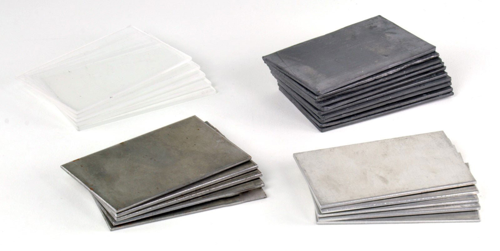 Įvairių medžiagų plokštės spinduliuotei sugerti, medžiagos: 5x akrilas, 10x švinas, 3x plienas, 3x aliuminis;
