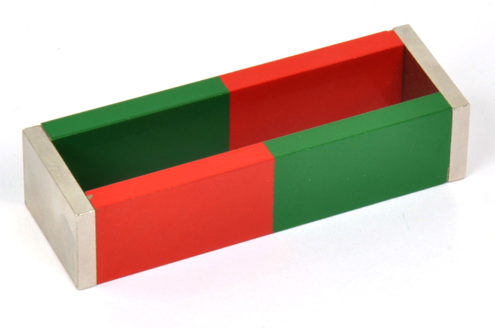 Raudonai ir žaliai pažymėti poliai, du geležiniai jungai;