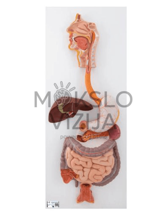 Šis natūralaus dydžio virškinimo sistemos modelis tiksliai atkartoja pagrindinių žmogaus virškinimo organų anatomiją nuo burnos ertmės iki tiesiosios žarnos. Modelis padalintas į tris dalis, todėl leidžia nuodugniai išnagrinėti vidaus struktūras ir tarpusavio organų išsidėstymą.