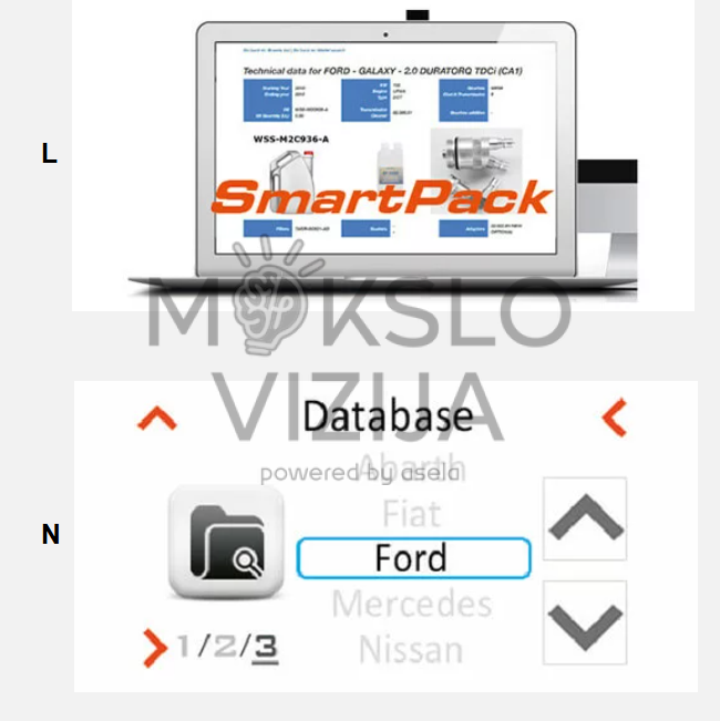 Įrenginyje yra didelis 5 colių spalvotas liečiamas ekranas, leidžiantis lengvai valdyti programą ir pasirinkti norimą operacijos tipą. Integruota multikalbė programinė įranga suteikia intuityvią navigaciją ir padeda efektyviai valdyti procesus, pritaikytus skirtingoms automobilių markėms bei modeliams. Naudodami įmontuotą duomenų bazę, remiantis pavarų dėžės tipu, marke ir kitais parametrais, galite automatiškai pritaikyti tinkamus keitimo ir plovimo ciklus. Duomenų bazė yra nuolat atnaujinama ir gali būti papildyta per USB arba SmartPack paslaugą.