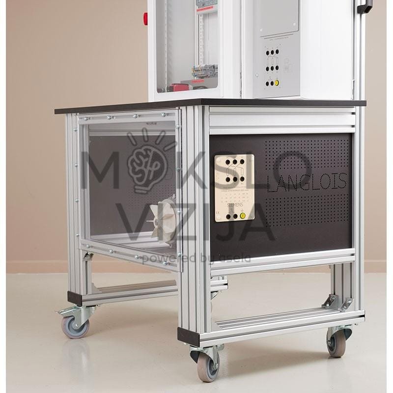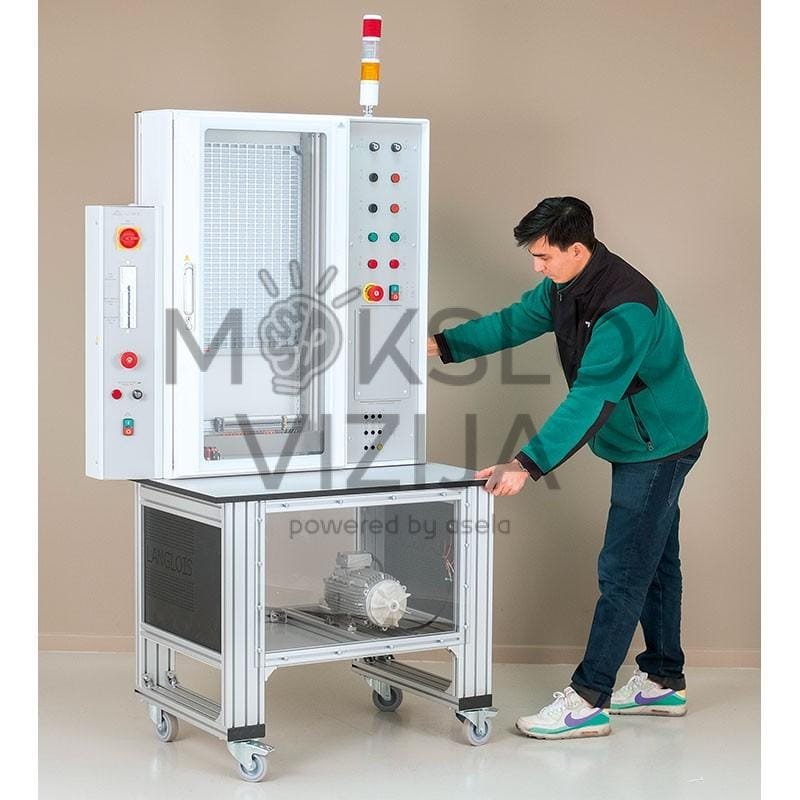Įrenginyje sumontuoti esminiai valdymo komponentai – jungikliai, mygtukai, signalinės lemputės, srovės apsaugos įrenginiai ir laidų jungimo terminalai. Visa sistema paruošta taip, kad naudotojai galėtų greitai sujungti grandines, atlikti saugius paleidimus ir tirti jų veikimo logiką.