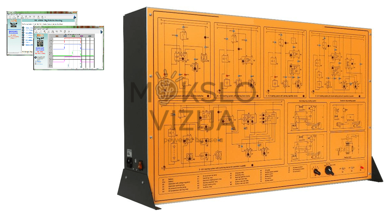 Stendas komplektuojamas su CAI mokomąja programine įranga ir metodine dokumentacija, kuri padeda mokiniams sistemingai atlikti simuliacinius pratimus, suprasti paleidimo sistemų veikimą ir ugdyti diagnostinius įgūdžius. Visi įrenginio komponentai ir jungtys yra suprojektuoti taip, kad užtikrintų saugų naudojimą mokymo aplinkoje.
