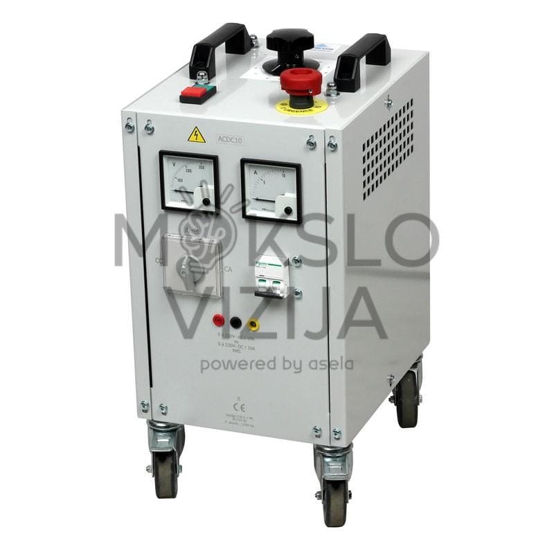 Galingas ir mobilus maitinimo šaltinis, skirtas tiek kintamosios (AC), tiek nuolatinės (DC) įtampos tiekimui elektrotechnikos mokymuose, bandymuose ir dirbtuvėse. Įrenginys sumontuotas ant ratukų su stabdžiais, todėl patogiai perkeliamas ir stabiliai laikomas darbo vietoje.