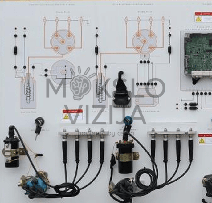 b) Mokymo stende įrengti matavimo ir diagnostikos taškai, leidžiantys identifikuoti elektrinius signalus, tokius kaip varža, įtampa, srovė ir dažnis uždegimo sistemos grandinėse.