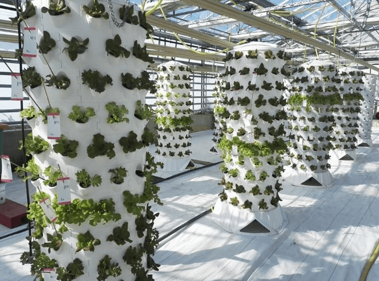 Sujungta 6 statinių sistema bendrai suteikia 714 auginimo vietų. Ji turi maistinių medžiagų rezervuarą, siurblį su 2 bar slėgiu, skysčio paskirstymo logiką į kiekvieno statinio viršų, individualius rutulinius vožtuvus srautui reguliuoti ir gravitacinį nutekėjimą atgal į rezervuarą. Rezervuarą galima montuoti po žeme, kad būtų mažiau šilumos poveikio ir geriau veiktų gravitacinis nutekėjimas, o siurblys taip pat turi laikmatį laistymo ciklams nustatyti.