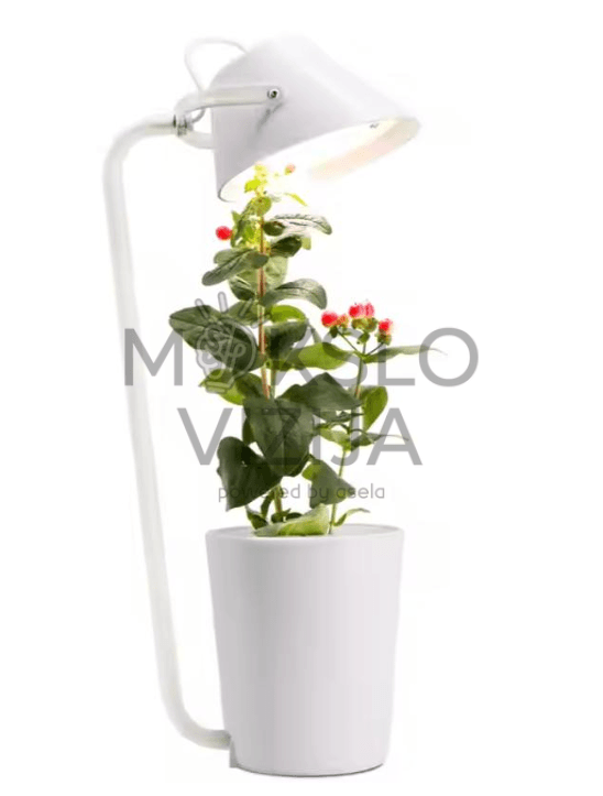 Kompaktiška hidroponinė auginimo sistema su integruotu pilno spektro LED apšvietimu, skirta patalpų augalų auginimui be dirvožemio. Įrenginys turi 0,5 l talpos vandens rezervuarą, vieną sodinimo vietą ir automatinį žemo vandens lygio priminimą. Integruotas vandens siurblys užtikrina cirkuliaciją pagal laikmatį, todėl augalai gauna stabilų maistinių medžiagų tiekimą. Dėl nedidelių matmenų sistema tinka naudoti namuose, biure ar edukacinėse erdvėse.