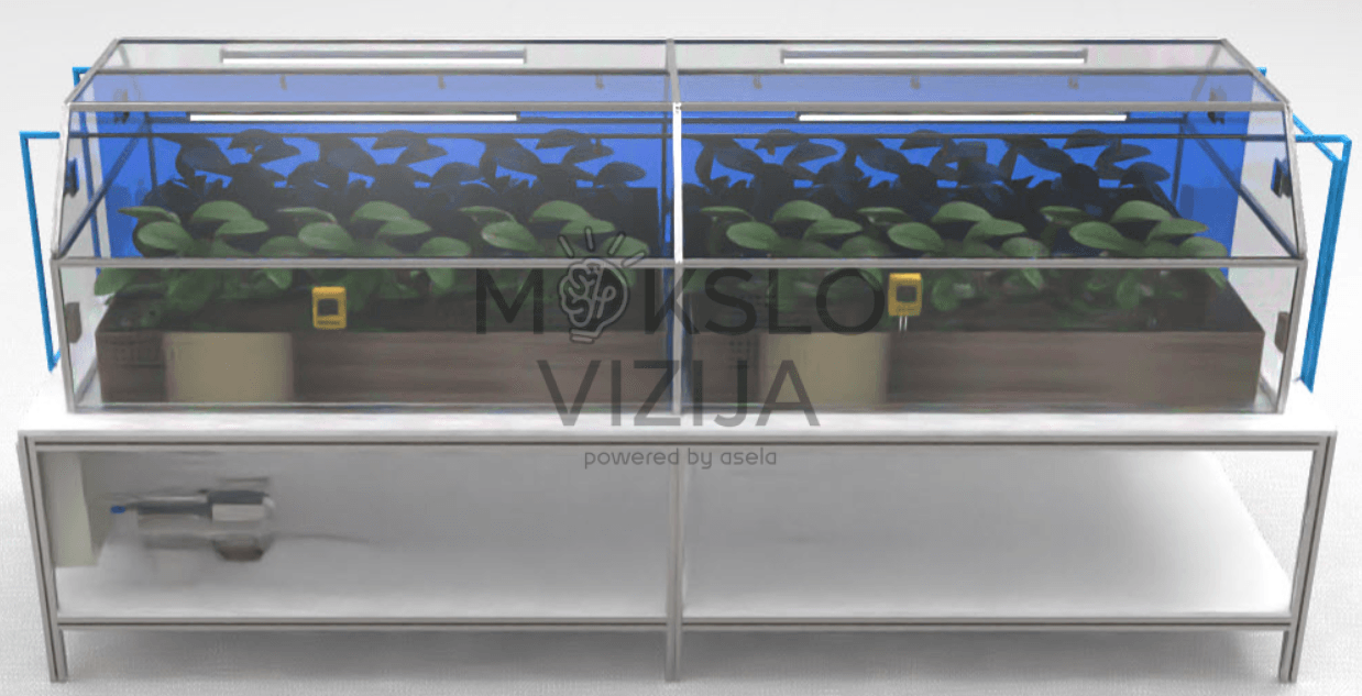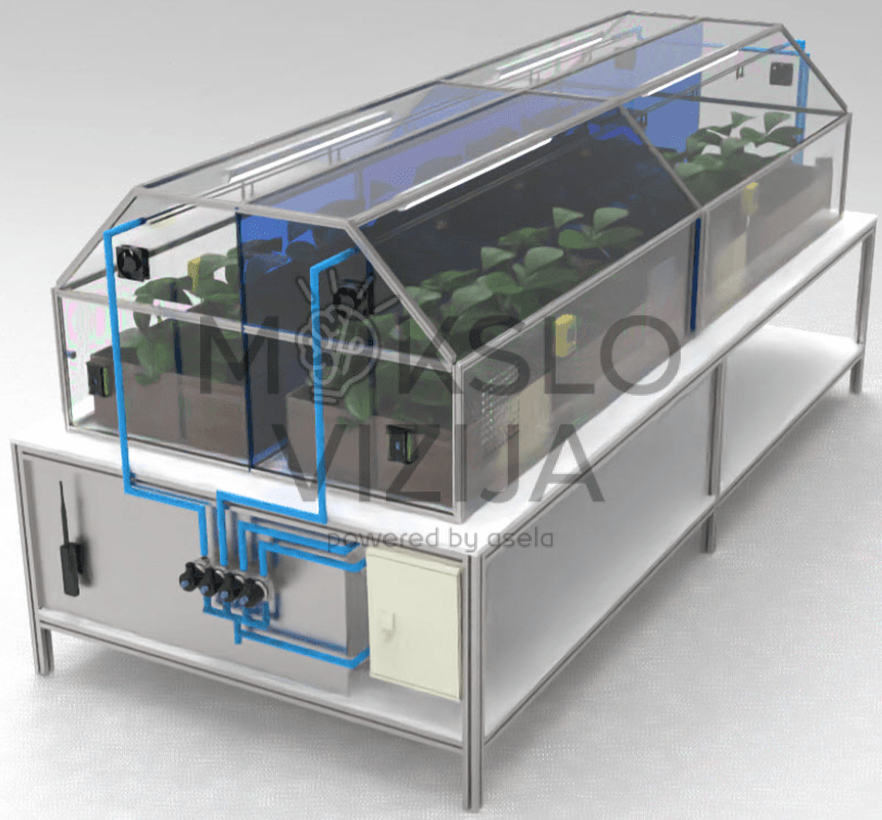 Šiltnamis komplektuojamas su tvirta darbo zona (stalu) ir integruota elektrine spinta su PLC valdymu, todėl jis tinka profesionalioms mokymo laboratorijoms ir ilgalaikiam naudojimui. Konstrukcija pagaminta iš korozijai atsparaus aliuminio profilio su natūraliu anoduotu paviršiumi, o šiltnamio uždangos – iš didelio atsparumo skaidraus akrilo.