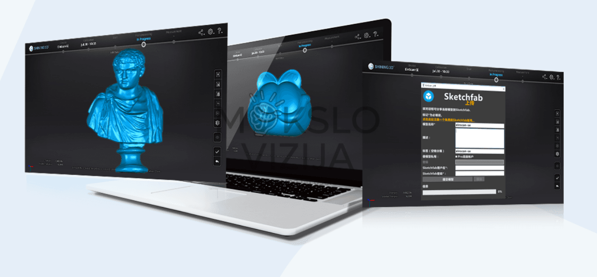 Programinė įranga automatiškai sujungia nuskenuotus fragmentus, padeda užpildyti spragas, sukuria vientisą paviršiaus tinklą ir leidžia paruošti modelį 3D spausdinimui arba darbui CAD aplinkoje.
