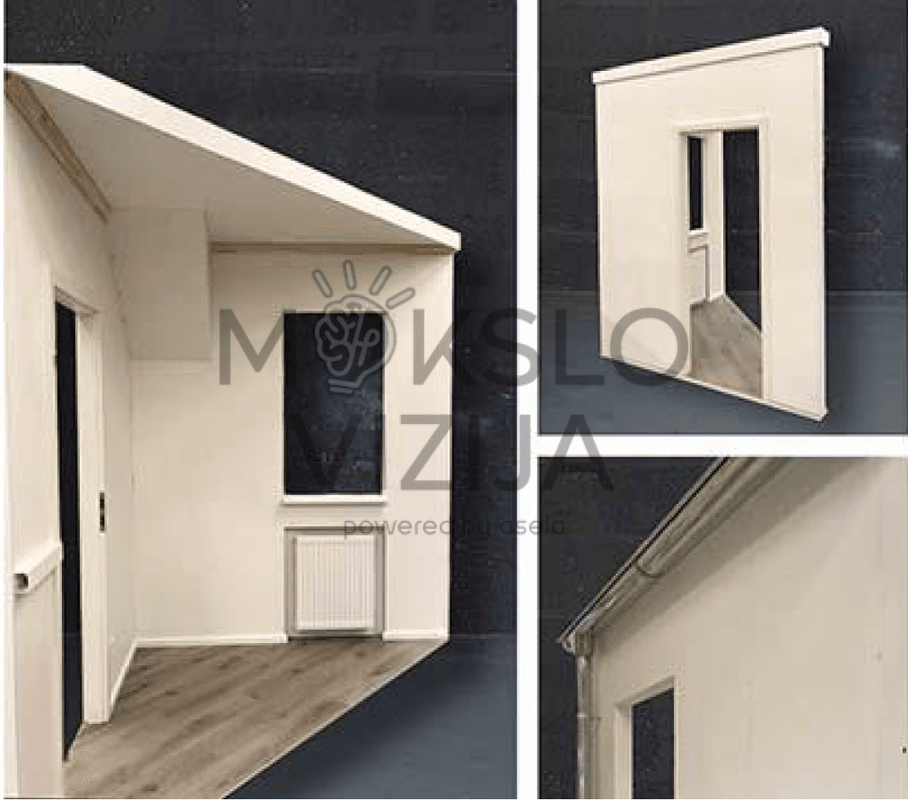 • Simuliacinis kambario dizainas su kampinėmis ir sienų jungtimis
