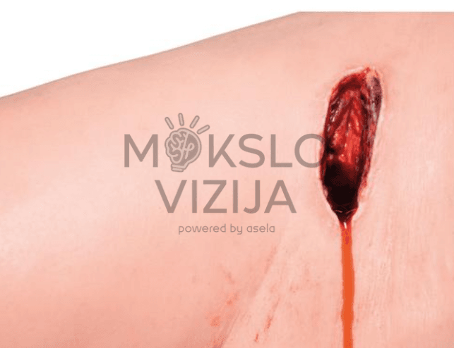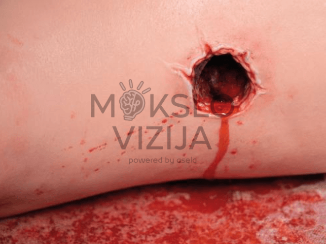 - Mokomasis trauminis šlaunies modelis su trim žaizdų tipais