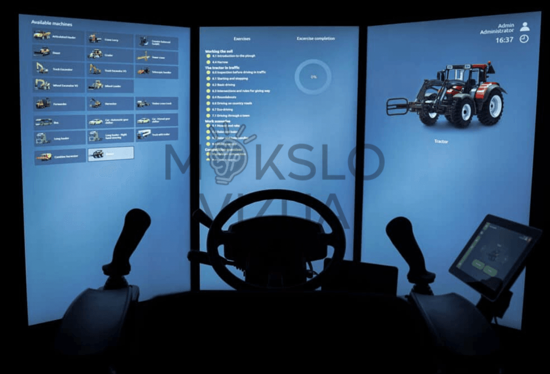 Simuliatorius skirtas profesionaliam žemės ūkio technikos operatorių mokymui, apimantis realistišką darbo aplinkos imitaciją ir struktūruotas užduotis, kurios ugdo praktinius bei saugos įgūdžius. Mokymo turinys sudarytas taip, kad būtų galima sistemingai mokytis technikos priežiūros, vairavimo, manevravimo, saugaus darbo ir specialių valdymo situacijų.