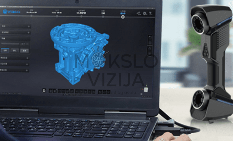 - Tikslus ir greitas skenavimas: Pasiekia 0,02 mm tikslumą ir užtrunka mažiau nei 3 minutes pilnam 360° objekto skenavimui.