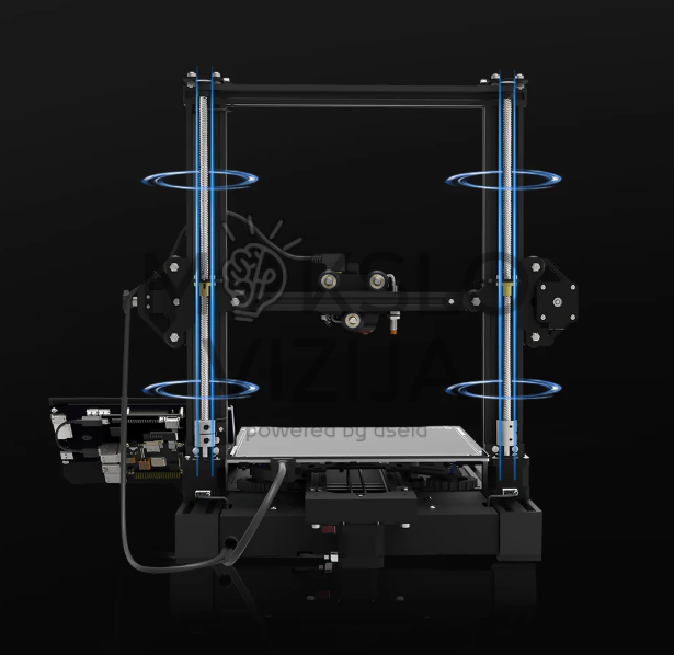 Spausdintuvas komplektuojamas su 32 bitų pagrindine plokšte, veikiančia 400 MHz dažniu, todėl užtikrinamas greitesnis komandų apdorojimas ir stabilesnis spausdinimo darbas. Tai ypač svarbu spausdinant didesniu greičiu arba naudojant sudėtingus modelius, kuriems reikalingas tikslus judesių valdymas. Sistema suprojektuota taip, kad sumažintų vibracijas ir pagerintų spausdinimo tikslumą, todėl detalės gaunamos lygesniais paviršiais ir geresniu sluoksnių sujungimu.