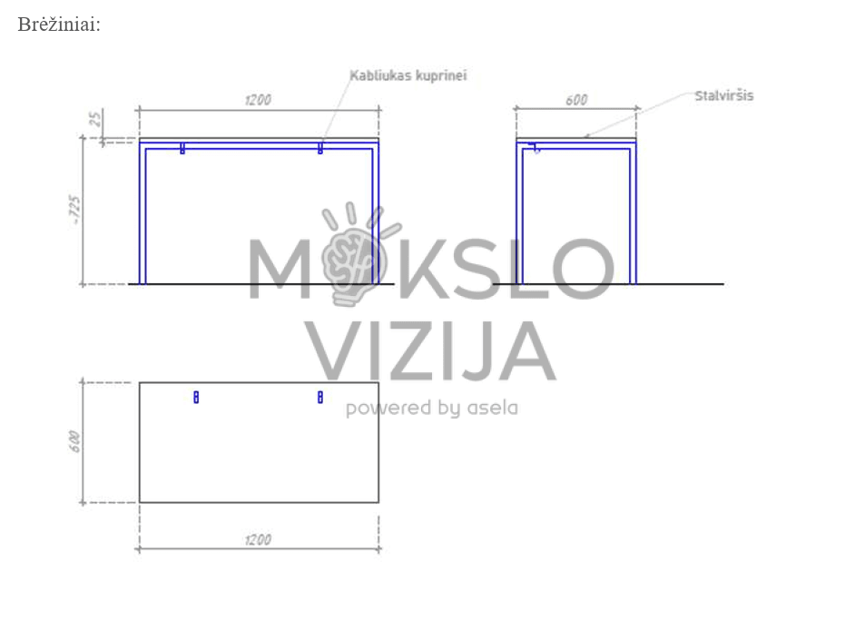 - Išmatavimai: 1200 × 600 × 725 mm – idealiai pritaikyta dviem naudotojams.